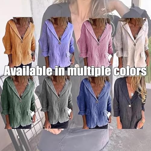 Southwestm Cotton and Linen Casual Lapel Single-Button Thin Coat, Summer Lapel Blazer Women Jacket Lightweight