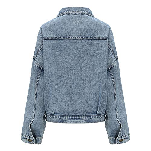 More information about Women's Long Sleeve Oversized Denim Jacket Casual Loose Fit Jean Coat with Large Pockets