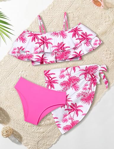 NAPU Girls Swimsuit Cold Shoulder Bikini Set Tropical Girls Bathing Suit with Wrap Beach Skirt
