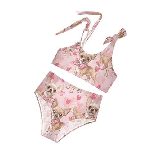 Wusikd Chihuahuas Girls Swimsuits Two Piece Pink Heart Swimwear Bikini Set for for Girls Size 3T