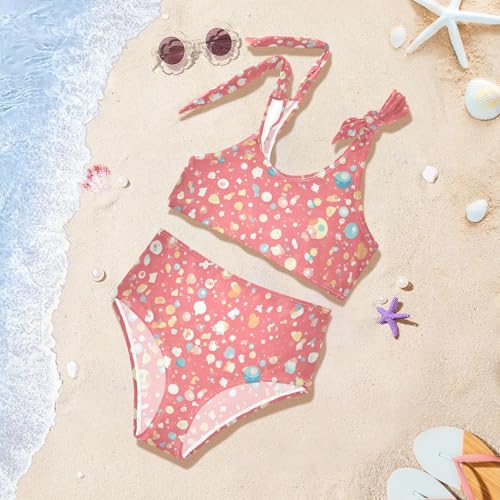 KLL Red Glitter Texture Girls' Two Pieces Bikini Set Scoop Neck Swimsuits Swimwear Adjustable Strap