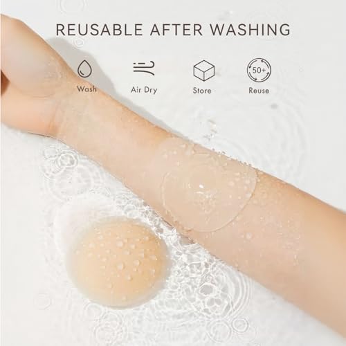 Fabric type: 100% SiliconeCare instructions: Hand Wash OnlyOrigin: ImportedSafe adhesive nipple cover:Made of safe medical grade silicone, our products can be worn safely and comfortably even on sensitive skin.And they can stick to your skin for a long time unless you tear it off, so you don't need to worry that it will fall.Reusbale& Washable:These silicone pasties aren't disposable .They can reuse many times.And they are waterproof, you just need to clean them with mild soapy water and air dry them after using.Lift-up Effect:Compared with other traditional nipple covers,our products add a lift tape to elevate the breast at least 1 inch,which create a better breast curves for you.Fashion:This kind of adhesive pasties are exclusviely designed for women who wear strapless or backless clothing.Even you can wear under sports bra and T-shirts to protect the sensitive area .The design of seamless edge make it invisible on your skin,so you don't need to worry about it being obvious.Comfortable & Ultra-thin:The thickness of these adhesive nipple covers gets thinner from the middle of the pasties to edge and does not exceed 3.5mm.So when you wear them in summer,you won't feel unbreathable .They are so comfortable that you don't feel their presence. Perfect for everyday use. High quality materials and excellent craftsmanship ensure long-lasting durability.