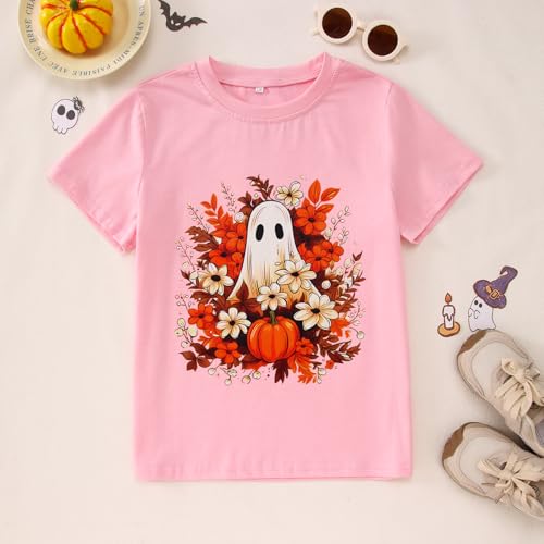 Halloween Shirt for Girls Floral Ghost T-Shirt Girl Pumpkin Tops Spooky Season Outfit Short Sleeve Tees Fall Clothes