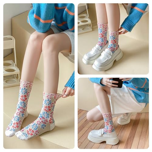 in-demand ! Vintage Embroidered Floral Socks for Women, Combed Cotton Crew Socks