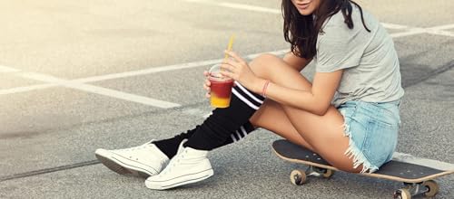 Abodhu Womens Thigh High Socks, Over Knee Socks for Women, Striped Knit Long Tall Stockings, Cosplay Casual Socks…