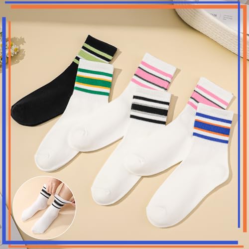Fabric type: 75% CottonCare instructions: Hand Wash, Machine WashOrigin: ImportedPattern: Striped【Comfort & Breathability】Retro striped socks are made from 75% cotton material, you will feel comfortable and keep your feet fresh and cozy. Cool mix of colors- and they stay up【Vintage Style & Fashion】These striped crew socks feature a classic vintage design, adding a fashionable touch to any outfit. Ideal for everyday wear or pairing with sneakers for that vintage sporty look【Versatile & Long-lasting】Designed for athletic, running and casual use, these crew socks are long-lasting and hold up well during hiking, camping and sports. Calf socks stay snug without slipping, making them ideal for active lifestyles【Stretchy Fit & Softness】The vintage socks offer a soft, stretchy fit that suits women, ladies, and men. Prevents sweat buildup and make them great for long hours of wear at home, shopping or evening parties【Multipack Socks】This 6 pair of sport running socks makes a thoughtful gift for birthdays or holidays. A must-have for any occasion Perfect for everyday use. superior materials and excellent craftsmanship ensure long-lasting durability.