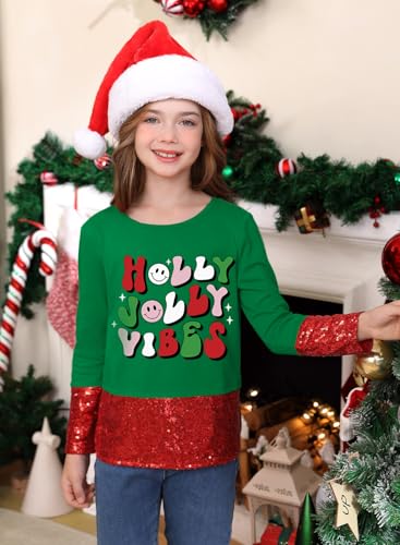 BesserBay Girls Christmas Printed Sequin Patchwork Long Sleeve Shirt 4-12 Years