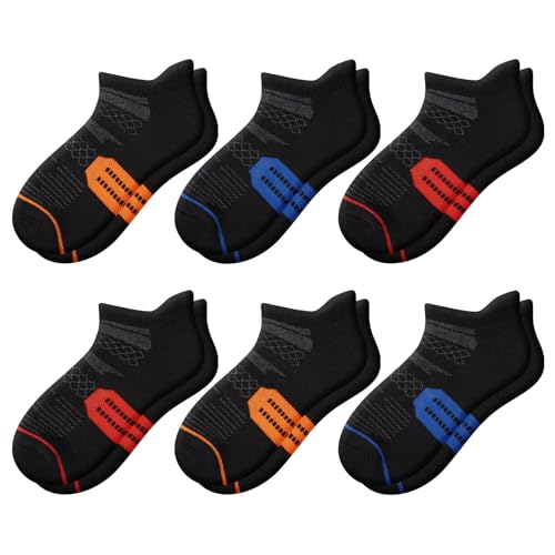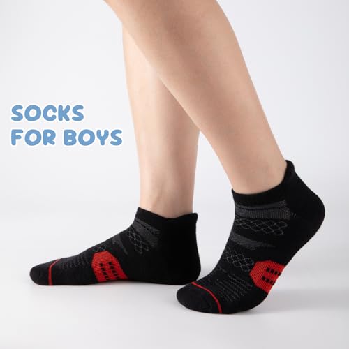 Comfoex Boys Socks Ankle Athletic Cotton Sports Socks With Cushioned Sole Big Little Kids 6-8 8-10 Years Old 6 Pairs