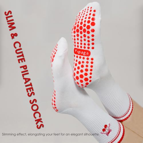 Fabric type: 90%cottonCare instructions: Machine WashOrigin: ImportedPattern: 心形🍒 SLIM&CUTE PILATES SOCKS: Yipaga's pilates socks cute feature heart, cherry & bow embroidery design that transforms basic workout gear into a fashion statement. The grippy socks woman subtle striped pattern creates a slimming effect, elongating your feet for an elegant silhouette. Who says we have to choose between cute and functional?🍒HIGH-QUALITY COMBED COTTON: Our pilates grip socks are crafted from thin, ultra-soft cotton fabric for all-day comfort. The breathable material keeps feet warm yet dry, while the non-slip grips ensure stability during workouts🍒UPGRADED GRIP SOCKS: Our pilates socks with grips for women feature a honeycomb grip design that delivers stronger traction than normal dots. The hexagonal pattern enhanced greatly safety with non-slip silicone grip, ensuring super stability during pilates, yoga, barre, and other workouts.🍒FUNCTION MEETS FASHION ON PILATES GRIP SOCKS: Our non skid grippy socks woman pilates are the perfect choice for Pilates, yoga, barre, gym workouts, barefoot exercises, and dance training. Beyond functionality, socks feature cute designs that make them a must-have for your activewear collection. Feel confident and pleasant as you step into the gym or yoga studio wearing these cute pilates socks.🍒PERFECT FIT AND PERFECT GIFTS: These women socks are produced with hand stitching technology, seamless toe closure prevents abrasion on the toes. One size fits most women (us shoe size 5-10). Best small birthday gift for women christmas gifts, new year, anniversary etc,. Perfect for everyday use. first-class materials and excellent craftsmanship ensure long-lasting durability.