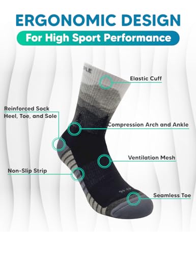 Pattern: Geometric𝗧𝗶𝗿𝗲𝗱, 𝗮𝗰𝗵𝗶𝗻𝗴 𝗳𝗲𝗲𝘁 𝗼𝗻 𝗹𝗼𝗻𝗴 𝗵𝗶𝗸𝗲𝘀? No more tired feet. Our ergonomic summer hiking socks offer optimal support, while padded heel and toe zones ensure unmatched comfort from the first step to the last mile on any trail.𝗕𝗹𝗶𝘀𝘁𝗲𝗿𝘀, 𝗶𝘁𝗰𝗵𝗶𝗻𝗴, 𝗮𝗻𝗱 𝗶𝗿𝗿𝗶𝘁𝗮𝘁𝗶𝗼𝗻? No more bruises. Say goodbye to blisters and irritation. Seamless design and reinforced cushioning prevent friction, so you can hike in total comfort, even on long, demanding adventures.𝗦𝗼𝗰𝗸𝘀 𝘀𝗹𝗶𝗽𝗽𝗶𝗻𝗴 𝗼𝗿 𝗳𝗲𝗲𝘁 𝘀𝘄𝗲𝗮𝘁𝗶𝗻𝗴? Anti-sweat, non-slip design. They stay in place without squeezing. The breathable mesh blend wicks away moisture, keeping your feet dry, cool, and blister-free—even during intense hikes.𝗨𝗻𝗰𝗼𝗺𝗳𝗼𝗿𝘁𝗮𝗯𝗹𝗲, 𝘀𝗰𝗿𝗮𝘁𝗰𝗵𝘆 𝗺𝗮𝘁𝗲𝗿𝗶𝗮𝗹𝘀? Premium material for comfort. Experience the ideal mix of cotton and polyester. Socks offer a gentle, dry feel and all-day comfort—perfect for trekking, traveling, or mountain exploring.𝗦𝗰𝗿𝗮𝗽𝗲𝘀 𝗼𝗿 𝗯𝗼𝗼𝘁 𝗿𝘂𝗯 𝗽𝗿𝗲𝘀𝘀𝘂𝗿𝗲? Extra leg & boot protection. It shields your skin from boot friction, boot socks for men work great with low, mid, or high-top hiking shoes. Walk freely with added comfort and zero distractions. Perfect for everyday use. superior materials and excellent craftsmanship ensure long-lasting durability.