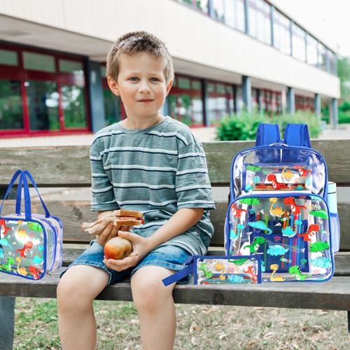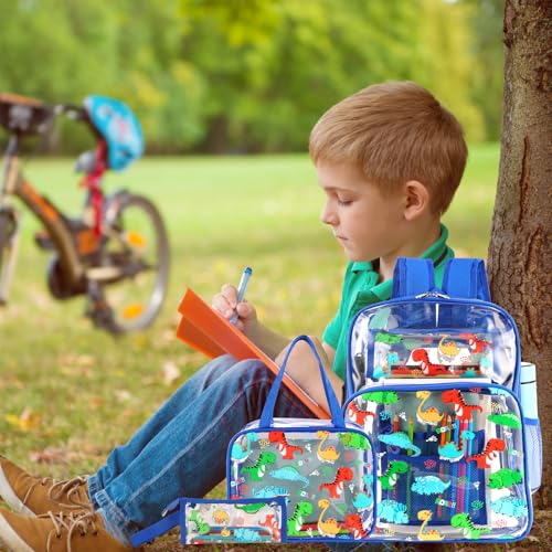 More information about Kolewo4ever 3 Pieces Clear School Backpack Set Back to School Gift Blue Dinosaur Transparent Backpack with Lunch Bag and Pencil Pouch for Girl Boy Kid Heavy Duty Bookbags Middle School Travel Pack