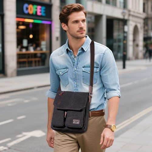 Fabric type: CanvasOrigin: ImportedClosure type: ZipperLining: PolyesterPremium Materials: Made from high-quality canvas with PU leather accents, this canvas bag for men is designed to be durable, water-resistant, and easy to clean. The interior is lined with soft polyester to protect your valuables, such as electronics and keys, from scratches.Classic & Practical Design: Crafted from durable canvas with PU leather accents, this satchel bag offers a simple, retro look. With various color options, itβs suitable for both men and women. The adjustable shoulder strap provides versatility, allowing you to wear it as a crossbody or shoulder bag. Ideal for different occasions such as travel, daily use, and work.Efficient Organization: The travel purse features 6 functional pockets, including a long zipper design for added convenience. The magnetic flap provides easy access to your belongings. It has 4 independent front pockets, a large central compartment with divided pockets and a hidden zipper pocket inside, and a back anti-theft pocket. This layout ensures organized storage while keeping your items secure and easily accessible.Lightweight and Versatile: Dimensions: 23x6.5x18cm (9x2.6x7.1 inches). Weight: 0.45kg. Despite its compact size, this crossbody purse offers ample space to easily accommodate an 11-inch tablet, passport, wallet, keys, phone, and other daily essentials. Its well-designed structure ensures that everything stays neatly organized, while the lightweight design makes it perfect for travel or daily use without feeling bulky or cumbersome.The Perfect Gift: This chic and practical tool bag makes a fantastic gift for fathers, boyfriends, friends, or anyone who enjoys a combination of style and functionality. Whether it's for a birthday, a holiday, or a special occasion like Father's Day, this versatile bag is the perfect choice to show care and appreciation. Thoughtful and functional, it's perfect for everyday use or any activity, making every moment more convenient and stylish. Perfect for everyday use. superior materials and excellent craftsmanship ensure long-lasting durability.