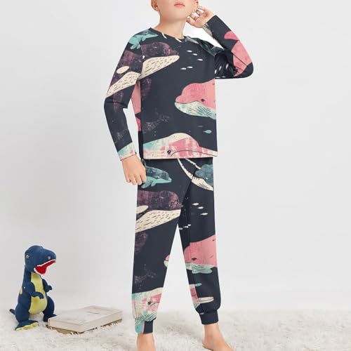 in-demand ! Whales Orcas Narwhals On NavyBoys Casual Comfort Pajamas, Long Sleeve Pajama Set130CM