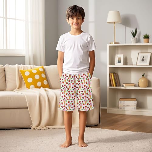 Strawberry Cone Cherry Sleep Shorts Summer Pajama Shorts Elastic Waist Sleep Bottoms with Pockets 6-14 Years