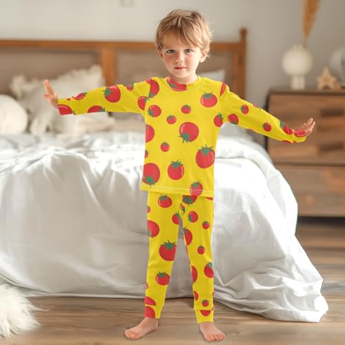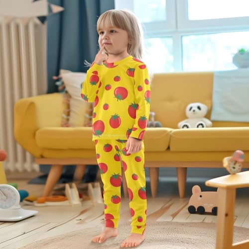 Pajama Sets Long Sleeve Tomato Pattern on Yellow gentle Comfy Sleepwear 2 Piece PJS 3-8T
