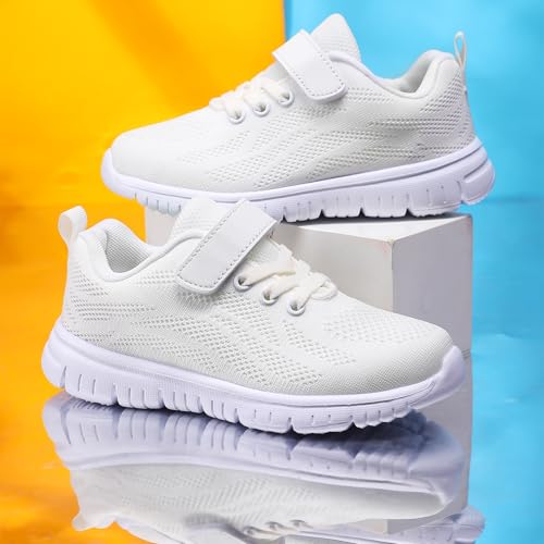 in-demand ! Boys Girls Sneakers Mesh Breathable Casual Lightweight Fashion Tennis Running Sport Primary School Students Athletic Kid Shoes White 11.5 US
