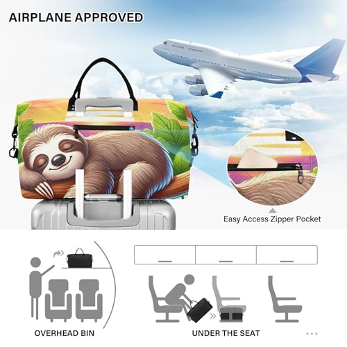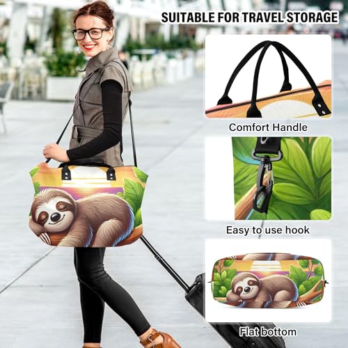 Sleeping Sloth Cute Duffel Bags Travel Makeup Pouch Set of 2, Print Women Sports Dance Bag Carry on Duffel Bag
