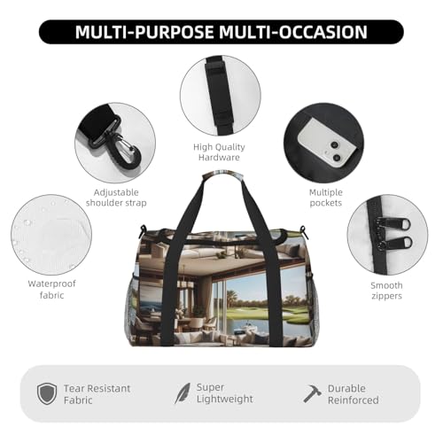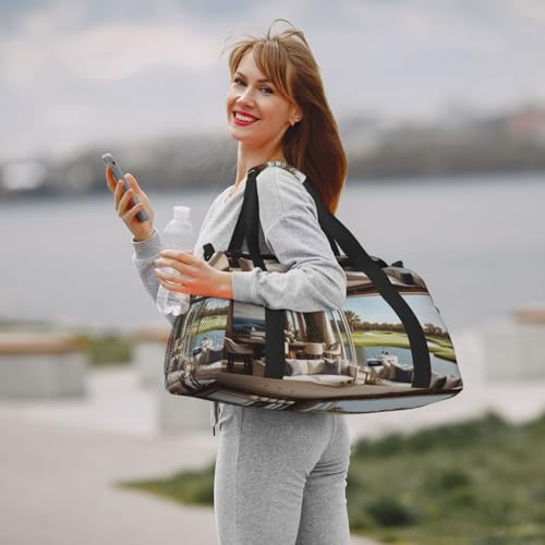 Golf Yacht Club Print Travel Duffle Bag - Foldable Personal Item Travel Bag for Women & Men,Carry-On Convertible Crossbody Tote Bags with Adjustable Shoulder Strap & Pockets 13x10.2x19.7 in