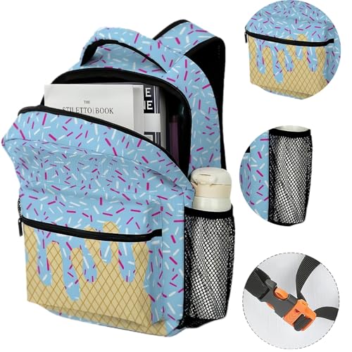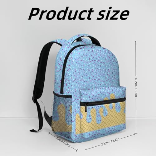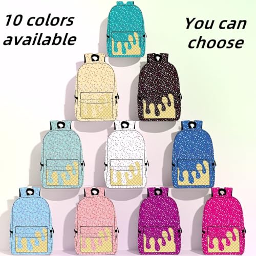【Fashionable & Adorable】Lightweight a Ice Cream Kawaii Shoulder Backpack, Featuring charming ice cream-themed prints and vibrant hues, this backpack is perfect for school, work, and travel. Its playful design adds a touch of cheer to your daily routine.【Spacious Storage】Lightweight a Ice Cream Kawaii Shoulder Backpack, With a large main compartment, front pockets, and side pockets, this ice cream backpack offers ample capacity to keep your belongings organized and easily accessible.【pleasant to Carry】Boy and girl ice cream drip backpacks, Equipped with soft, adjustable shoulder straps to fit different heights, plus a webbing loop on top for easy gripping and hanging, ensuring convenience for long-term use.【Water-Resistant & Durable】Lightweight a Ice Cream Kawaii Shoulder Backpack,Crafted from polyester and Oxford cloth, this backpack is resistant to tearing, with smooth zippers, making it a high-quality, long-lasting choice.【Lightweight & Portable】This Boy and girl ice cream drip backpacks, ice cream backpack is easy to carry, suitable for both double-shoulder and single-shoulder use, making it an ideal companion for daily life. Perfect for everyday use. first-class materials and excellent craftsmanship ensure long-lasting durability.