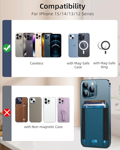 Join Prime Cancel anytimeBrand: HiWeColor: Dark Blue Wallet - Black BandMaterial: Faux LeatherStyle: MinimalistPattern: Solid【Higher Security】 Built-in 3X stronger magnet than the official magnetic wallet for iPhone; Up to 4200g of magnetic force will hold your wallet firmly, and the stretchy elastic fabric band prevents your cards from falling out【Compatible with MagSafe】 HiWe magnetic phone wallet is compatible with iPhone 16/15/14/13/12 series caseless or with official Mag-Safe or magnetic cases; incompatible with non-magnetic cases, even thin cases【RFID/NFC Blocking】 HiWe for MagSafe wallet can block 13.56MHz work signals from Driver Licenses/credit cards/debit cards/ID cards, shield your cards from unauthorized scanners, and keep your identity and assets safe while shopping, travel, and work【Minimalist & Well Made】 Size 3.85*2.63*0.16, add no extra bulk to the phone; Crafted from premium PU leather, the slim phone wallet combines durability and aesthetics; Precision craftsmanship ensures it maintains its sleek appearance over time【Large Capacity and Fast Access】 HiWe for MagSafe wallet securely holds up to 7 cards or cash, and the thumb slot ensures easy card retrieval during purchases; Easy to carry your cards, photos, cash, coins, etc【Package】 1 HiWe Magnetic Wallet comes in 1 nice white paper package box; It would be a great gift for him/her/yourself; Suitable for Christmas, Valentine's Day, Mother's Day, Father's Day, Birthday, Graduation, and Thanksgiving; Multiple colors are available to match the one-of-a-kind style【Customer Service】 1-year warranty, 7*24h online for FAQs; If any problem, please feel free to contact HiWe via the Amazon message center Perfect for everyday use. superior materials and excellent craftsmanship ensure long-lasting durability.