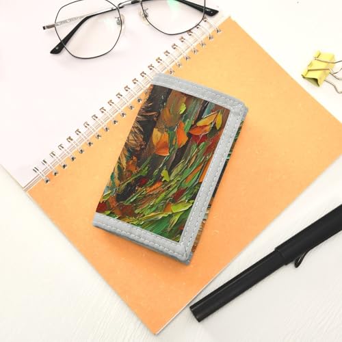 Pomeranian in Foliage robust Nylon Fabric Wallet for Boys and Girls - Multi-Functional with 2 Clear Pockets, Zipper Coin Compartment, 3 Card Slots & Keyring