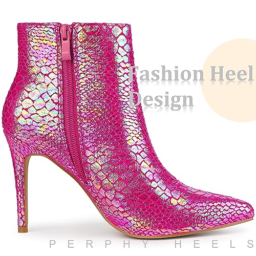 Perphy Snakeskin Printed Metallic Boots Pointed Toe Stiletto Heel Ankle Boots for Women