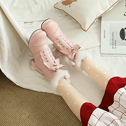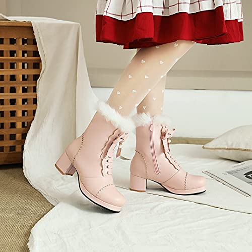 UniqueStride Women's Ankle Boots Platform Ankle Bootie with Chunky Block Heel Lace Up Faux Fur Winter Shoes