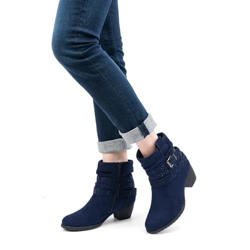 Women's Mid Calf Boots,Round Toe Comfort Low Heel Slouchy Dress zip booties with Jeweled strap