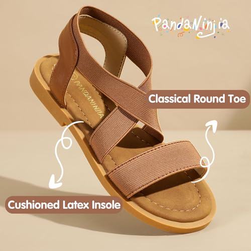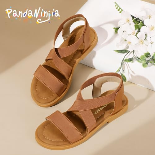 PANDANINJIA Girls Sandals Slip-on Elastic Ankle Cross Strappy Gladiator Dress Sandals Flats Summer Shoes Little Big Kids Sandals