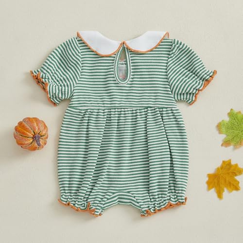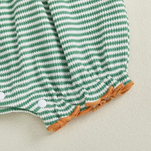 Newborn Baby Girl Halloween Outfit Pumpkin Embroidery Bubble Romper Waffle Striped Short Sleeve Bodysuit Clothes