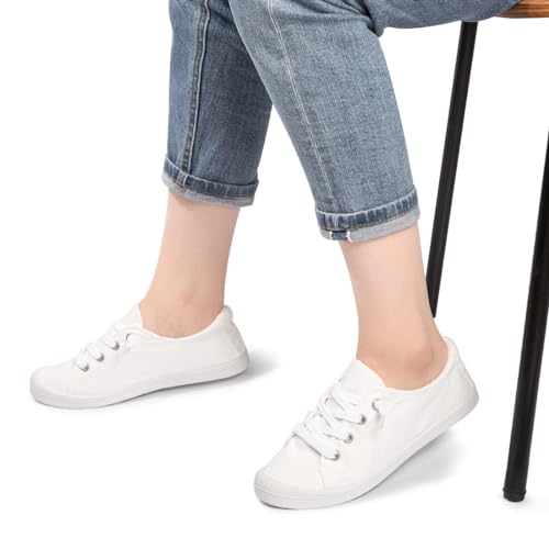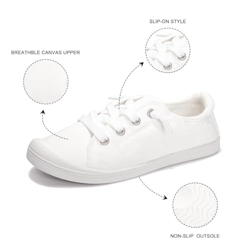 Womens Slip On Shoes, Canvas Boat Loafer Shoes with Low Top, Casual Fashion Sneakers for Women Walking with Non Slip Rubber Outsole