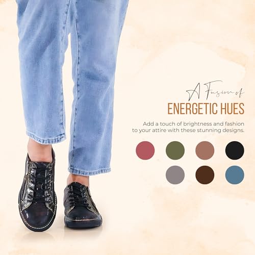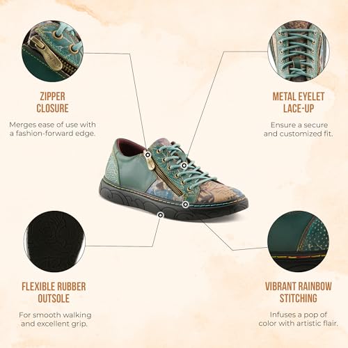 L'Artiste by Spring Step Women's Danli-Bloom Sneaker – Hand-Painted Leather Platform Shoes with Zipper & Lace-Up Closure, Removable Insole, Rainbow Stitching, Comfort Fit