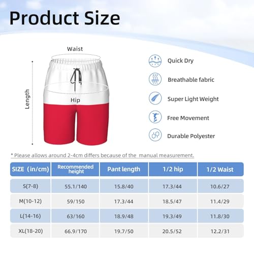 More information about Polish Flag Youth Beach Pants, smooth and Breathable, with Drawstring Waist, Suitable for Sports and Leisure.