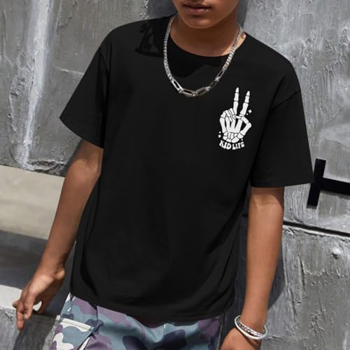 Boys Funny Saying Shirts Graphic Tees Cute Short Sleeve Preppy Clothes Tweens Skeleton Hands Tshirts for Kids Boys