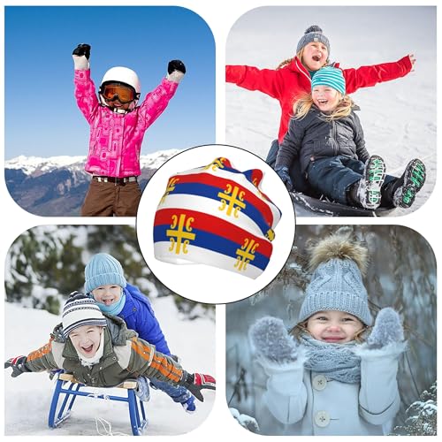 Flag of The Serbian Cross Children Hip Hop Knitted Hat Kids Elastic Leisure Knit Cap comfortable Sleep Beanies Black