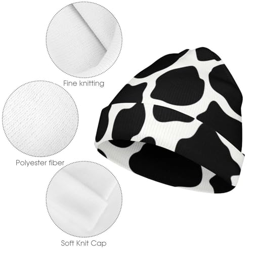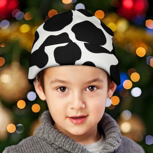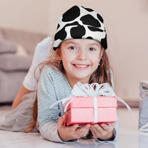 Cow Print Kids Beanie Hat for for Girls Boys Children Cap Winter Knitted Chemo Cancer Headwear Accessories Gifts Decoration Black