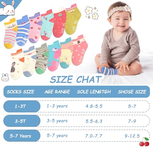 in-demand ! SkiBeaut Toddler Grips Socks, Non Slip Kids Toddlers Boys Girls Grippy Child Socks with Grippers for 1-7 Years Old,12 Pairs