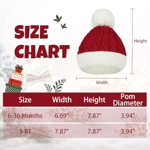 Fabric type: 100% CottonCare instructions: Hand Wash OnlyOrigin: ImportedClosure type: ElasticQuality material: The knitted baby christmas hats are made of knitting wool, quality material and exquisite workmanship, soft to touch and comfortable to wear, elastic and durable, let them company you during one cold winter and another.Adorable appearance: Red knitted kids christmas hat with white pom-pom and brim, the whole look is full of Christmas breath, lovely and elegant, which is a nice costume accessory and can add more festive atmosphere around you.Nice Christmas gifts: Newborn baby santa hats are wonderful gifts to your family and friends, coworkers and classmates in the Christmas day, birthday party, celebration and wedding party, New Year, express your warm love to them.Size: Stretchy hat. Suitable for boys and girls (6 Months-8 years) .The kids santa beanie hat is easy to put on and stays on, Perfect cold weather gift accessory to wear with any outfit or to any occasions.Multiple occasions: The toddler christmas hat for boys girls are suitable for wearing in the daily life or many occasions such as Christmas, New Year, they can keep your head and ears warm and also make you attractive in the crowds. Perfect for everyday use. superior materials and excellent craftsmanship ensure long-lasting durability.