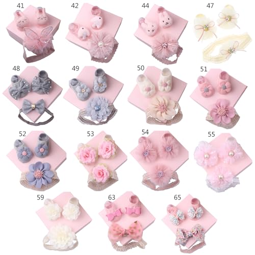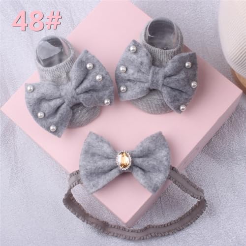 Baby Bow Headband & Socks Set for 0-1Y Boy Girl Elastic Lace Headdress Infant Floor Socks Newborns Accessories Baby Hairband Socks Set