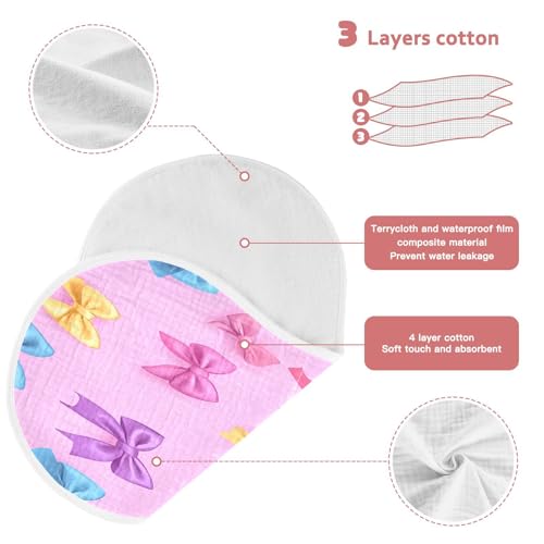 Coloured Bow Plant Burp Cloths Cotton Baby Washcloths,Large 22x11in Burping Cloth Absorbent and gentle for Newborn Baby Boys and Girls,4 Pack