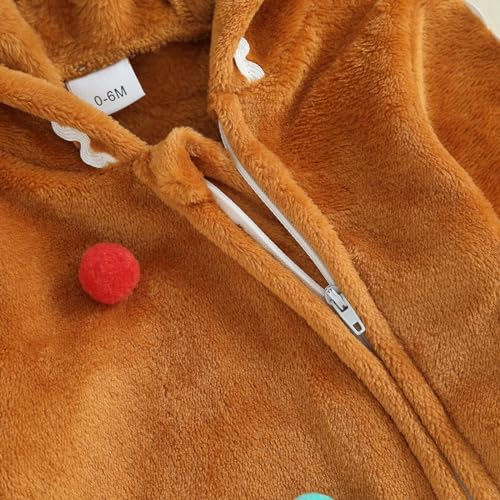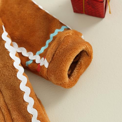 Baby Boys Girls Christmas Gingerbread Clothes Fuzzy One-piece Long Sleeve Hooded Romper Jumpsuit Cosplay Outfit