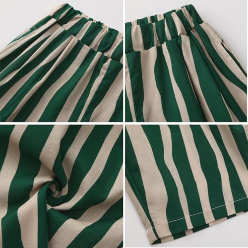 Why Choose Ashmyova Boy's Cotton Stripe Shorts Summer Elastic Waist Casual Capri Pants for Boys with Pockets 2Pcs?