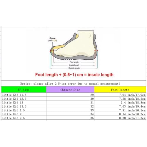 • Please Check the size details on descriptions to choose your kids size,the child's feet grow speedy,we suggest you choose one size larger.Thanks!