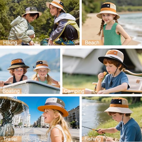 • CREATIVE DESIGN: The children's fishing hat is designed with four-color splicing, cute and fashionable, can be matched with any clothing; round ventilation holes are made of reflective fabrics, not stuffy for a long time, and safer for traveling at night; lightweight and foldable design allows you to easily fit it into your backpack for plain carrying