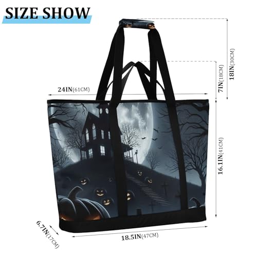 More information about Large Insulated Reusable Tote Bag Halloween Full Moon Pumpkins for Grocery Shopping for Women Men, Cooler Bag with Zippered Top & Handles for Travel Beach Picnic