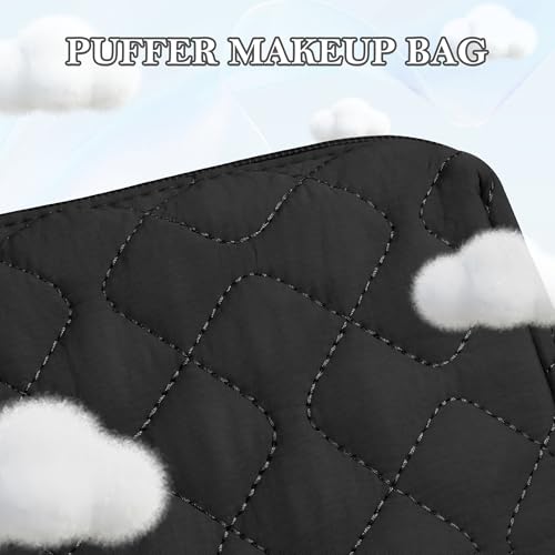 【2Pcs Spacious】This quilted travel makeup bag includes inner pockets, and waterproof TPU pocket, providing organized storage for cosmetics and toiletries. (9.05 inch x 6.10 inch x 3.94 inch)【Convenient Access】The make up travel bag’s flat design allows it to open fully for a clear view of all your items, and it closes easily when you’re ready to go【Quality Materials】Crafted from smooth, waterproof puffy fabric that’s easy to clean, with a robust polyester lining. The makeup brush compartment is made from clear, waterproof TPU to keep brushes neatly stored and visible【Versatile Use】Ideal for travelers, this makeup bag doubles as a toiletry bag, purse, or bathroom organizer, making it perfect for business trips, vacations, and outdoor activities. It also makes an excellent choice as gifts for women or girl【After-Sales Service】For any inquiries about this cosmetic bags or assistance, please inform us. Hand washing is recommended for durability Perfect for everyday use. superior materials and excellent craftsmanship ensure long-lasting durability.