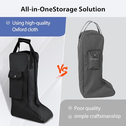 • Premium Materials: This riding boot bag is made from waterproof Oxford fabric, effectively protecting cowboy boots, high-top riding boots, and everyday footwear from dust and scratches, suitable for both storage and transportation.
