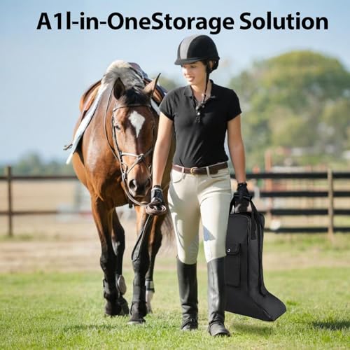 • Universal Compatibility: This spacious boot storage bag accommodates remarkably riding boots, leather boots, cowboy boots, snow boots, etc. The smooth lining prevents scratches, making it an ideal shoe bag for closets, tack rooms, or RV storage spaces.