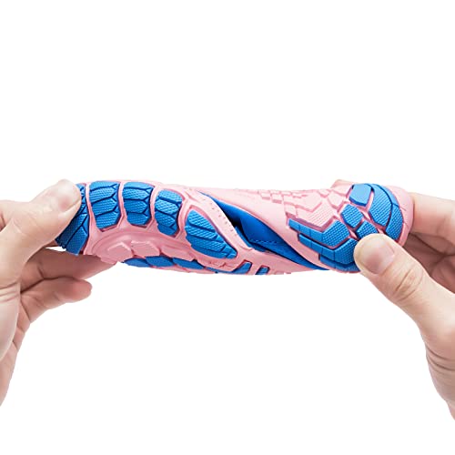 Sole material: RubberOuter material: PolyesterClosure type: Hook & LoopWater resistance level: Water ResistantQUICK DRY: These water shoes have several drainage holes in each sole that allow just the right amount of water to escape from the shoe, ensuring a more comfortable and drier shoe environment for children to engage in water activities.ANTI-SLIP & SAFETY: The tread pattern of the sole is designed to prevent slipping on the ground of water activities, and the rubber outsole can protect the kid's feet from rocks and sharp objects.COMFORTABLE AND FLEXIBLE: The upper is made of soft stretch fabric material, which can be twisted flexibly, allowing you to walk easily and comfortably. At the same time, the insole fits perfectly with the water shoes to prevent the insole from falling off when wearing.APPLICABLE OCCASIONS: Our Kids water shoes are suitable for water parks, outdoor sports, beach, swimming, beach volleyball, surfing, walking, jogging, kayaking, lawns, gardens, sailing, boating, canoeing, surfing, etc.CUSTOMER SERVICE: We provide exchange and Money Back service if there are any size/quality issues, make your purchase risk free. If you have any problems with the water shoes you bought, please send the email to us at any time, we will try our best to solve it for you. Perfect for everyday use. High quality materials and excellent craftsmanship ensure long-lasting durability.