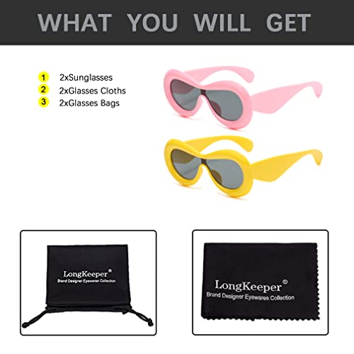 Long Keeper 2 Pair Oversized Oval Sunglasses Women Men Y2K Sunglasses Inflated Frame One Piece Lens Sun Glasses UV400